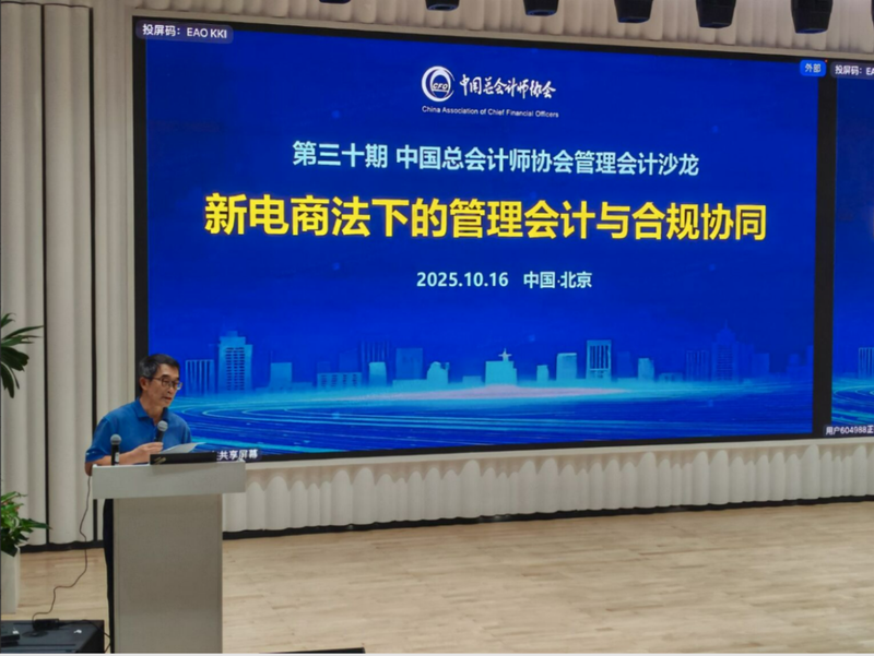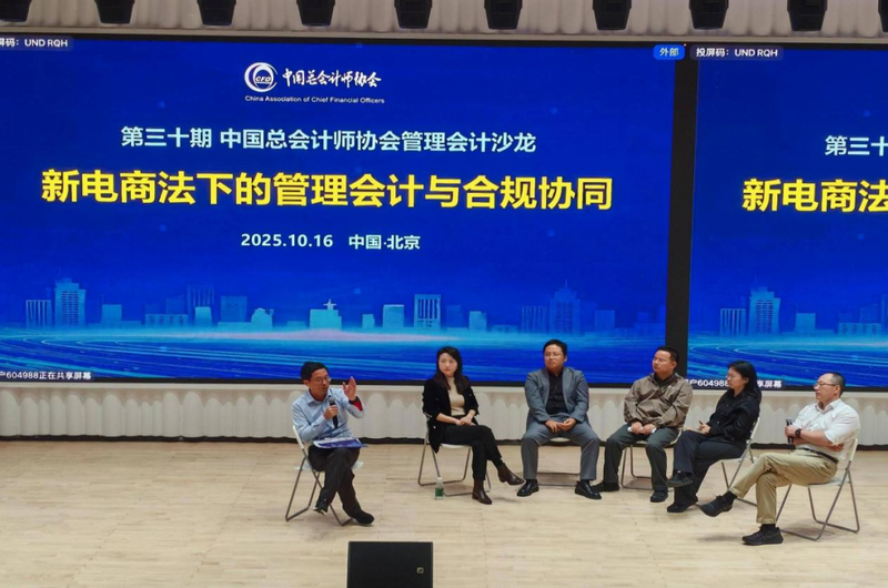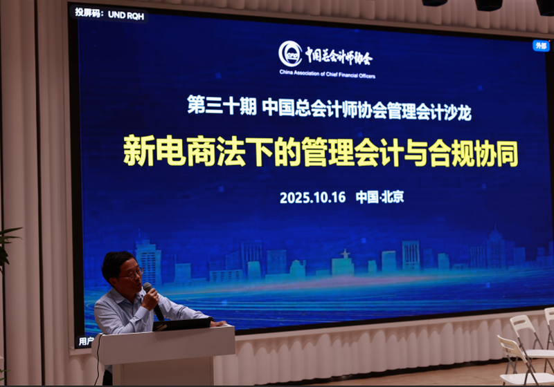 10月16日,由中国总会计师协会主办,中国总会计师协会管理会计分会、《中国管理会计》杂志承办,北京飞书科技有限公司、北京必迈体育用品有限公司、百望股份有限公司、动信通(北京)科技集团股份有限公司、小兵投行学院协办的第三十期中国总会计师协会管理会计沙龙在北京成功举办。本次沙龙采用线下互动交流模式,来自中国总会计师协会、电商领域头部企业、高等院校及科研机构的领导嘉宾、业界专家学者150余人齐聚一堂,共同探讨“新电商法下的管理会计与合规协同:合规穿透、数据赋能与风险制衡”的核心话题。