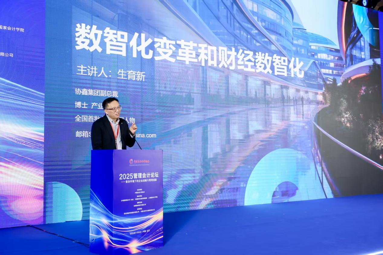 2025年11月9日,由中国总会计师协会(以下简称中总协)主办,《中国管理会计》杂志、中国财经出版传媒集团、上海国家会计学院协办的2025管理会计论坛在北京成功举办。来自政府部门、大型国有企业、头部民营企业、管理会计业界学界的领导专家,以及会员单位代表和征文作者近400人齐聚一堂,聚焦“复杂环境下企业战略与管理创新”助力经济社会可持续发展。协鑫(集团)控股有限公司副总裁生育新以“数智化变革和财经数智化”为题发表演讲。主要内容如下: