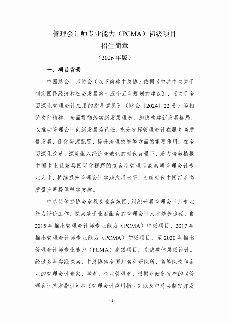 附件:管理会计师专业能力(PCMA)初级项目招生简章(2026年版)