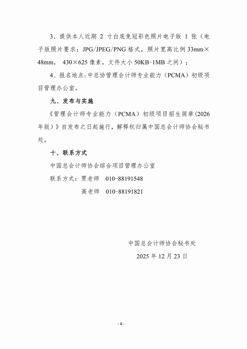 同时为做好管理会计师专业能力(PCMA)初级项目2026年度招生工作,现将《管理会计师专业能力(PCMA)初级项目招生简章(2026年版)》予以公布。