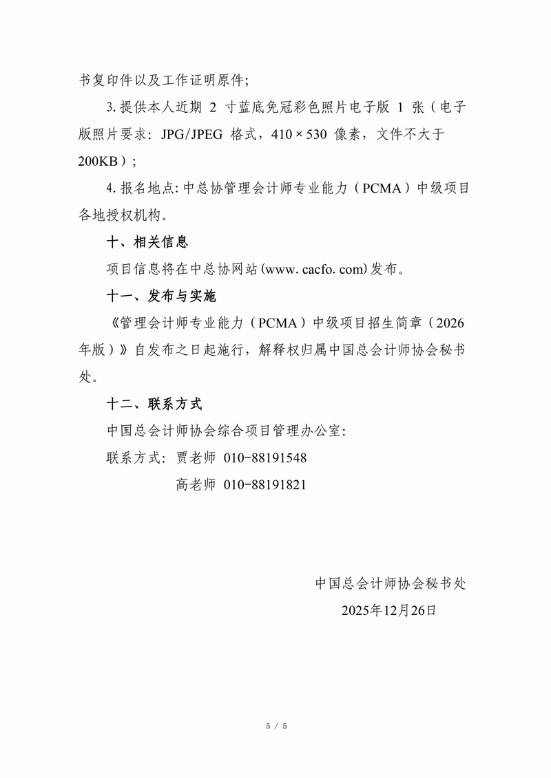 同时为做好管理会计师专业能力(PCMA)中级项目2026年度招生工作,现将《管理会计师专业能力(PCMA)中级项目招生简章(2026年版)》予以公布。