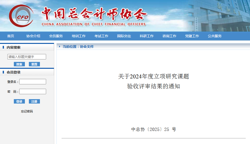 经过各方的协力,中国总会计师协会2024年度按省部级立项的课题组织、研究、评审工作已圆满完成。现将2024年度立项研究课题验收评审结果印发给你们,请转发课题具体承担单位及承担人。此次课题评审,授予石油分会、兵器分会、水利水电分会、 陕西省总会计师(财务总监)协会、辽宁省会计与珠算心算学会优秀组织奖称号,并予以表彰,各奖励2000元。对获一等的课题组,每组奖励1000元;获二等的课题组,每组奖励600元。以资鼓励。