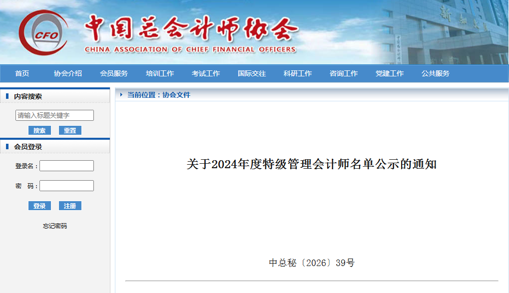 中国总会计师协会于2026年1月18日在京召开了2024年度特级管理会计师评审委员会(复评组)会议。经评委会评审,确定27人入围2024年度特级管理会计师公示名单。
